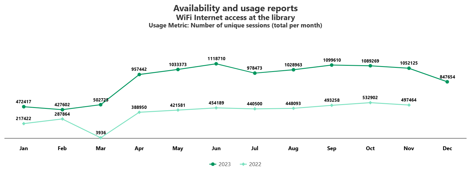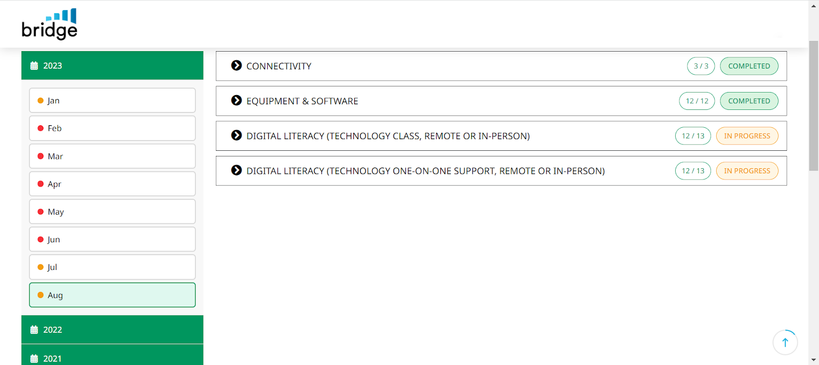 Our easy-to-use monthly and yearly interface allows libraries to collect consistent data across key technology categories. Data can be backdated and tracked by month/year, with flexibility to input at your convenience. Libraries can review progress, monitor historical trends, and use detailed metrics to identify gaps and set informed goals. Plus, libraries can access customizable reports and flat file downloads to support advocacy and decision-making.